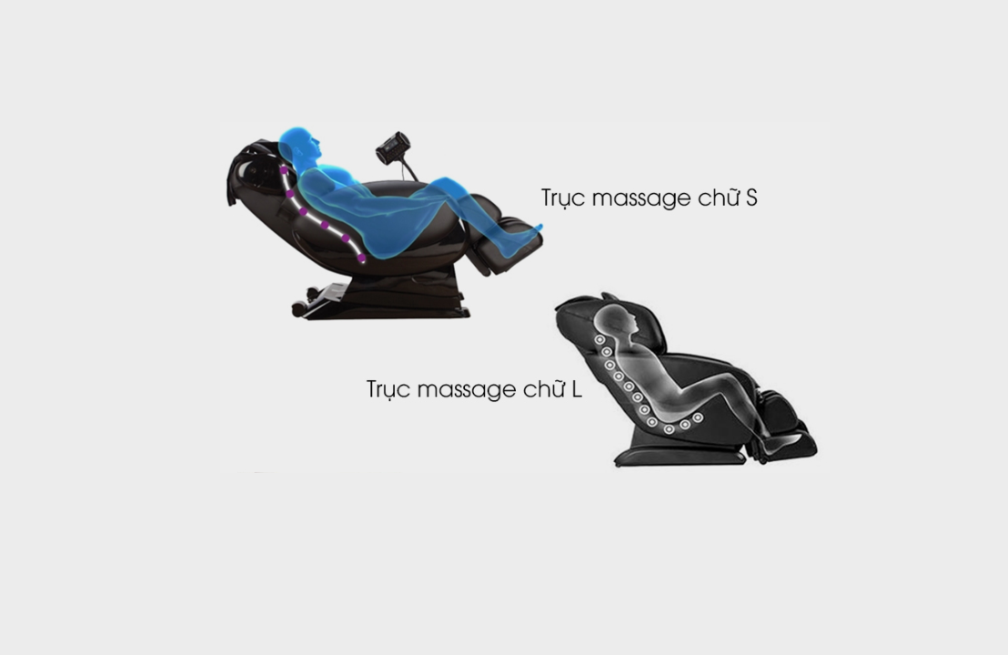 Ghế massage toàn thân khung sườn S, L và SL cho phép các con lăn di chuyển theo khung đường ray này một cách linh hoạt, kéo giãn các nhóm cơ dọc cột sống làm dịu các cơn đau nhức suốt dọc cơ thể. Nếu các con lăn tác động theo dọc cột sống trong thời gian dài thì sẽ giúp định hình lại cấu trúc xương sống chống tình trạng cong vẹo cột sống.