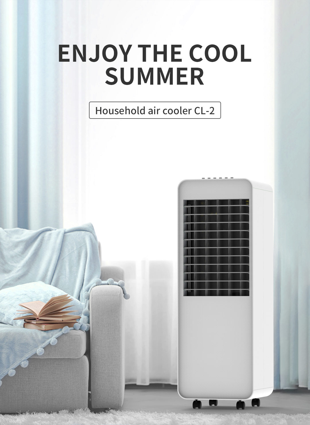 quạt điều hòa Air Cooler CL - 2 được thiết kế với tông màu trắng chủ đạo dễ dàng phối hợp sử dụng từ phòng khách tới phòng ngủ cùng hệ thống bánh xe tiện dụng, tiện lợi để di chuyển làm mát ở bất kỳ không gian nào từ trong nhà cho đến các bữa tiệc nướng ngoài trời.