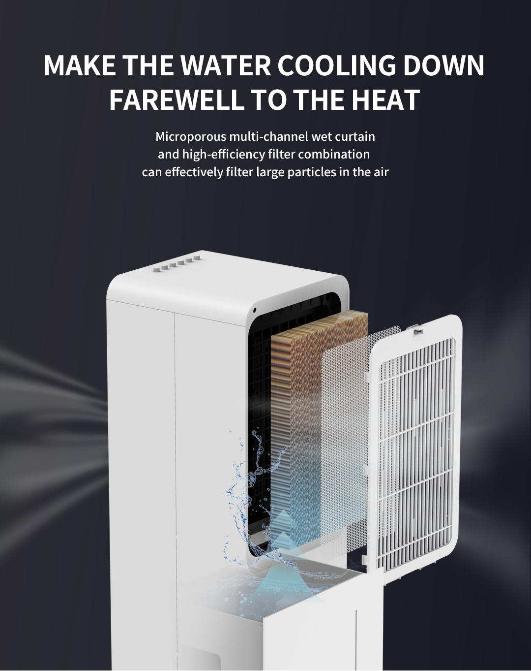 Rèm ướt siêu nhỏ của quạt điều hòa Air Cooler kết hợp với bộ lọc hiệu quả cao có thể lọc có thể lọc tốt các hạt lớn trong không khí.