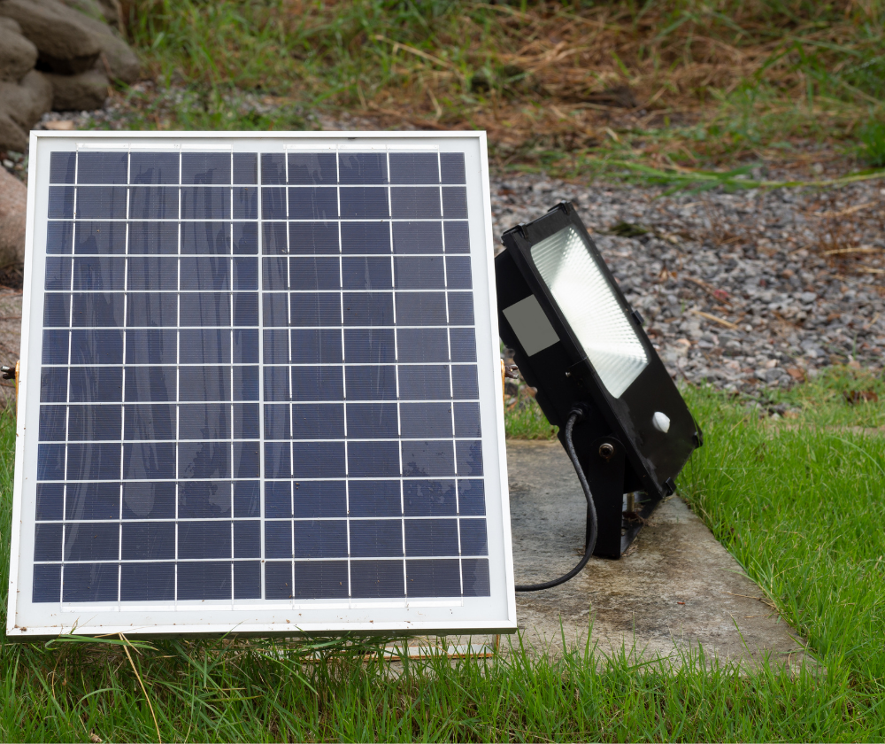 Đèn pha năng lượng mặt trời được sử dụng lắp đặt xung quanh nhà