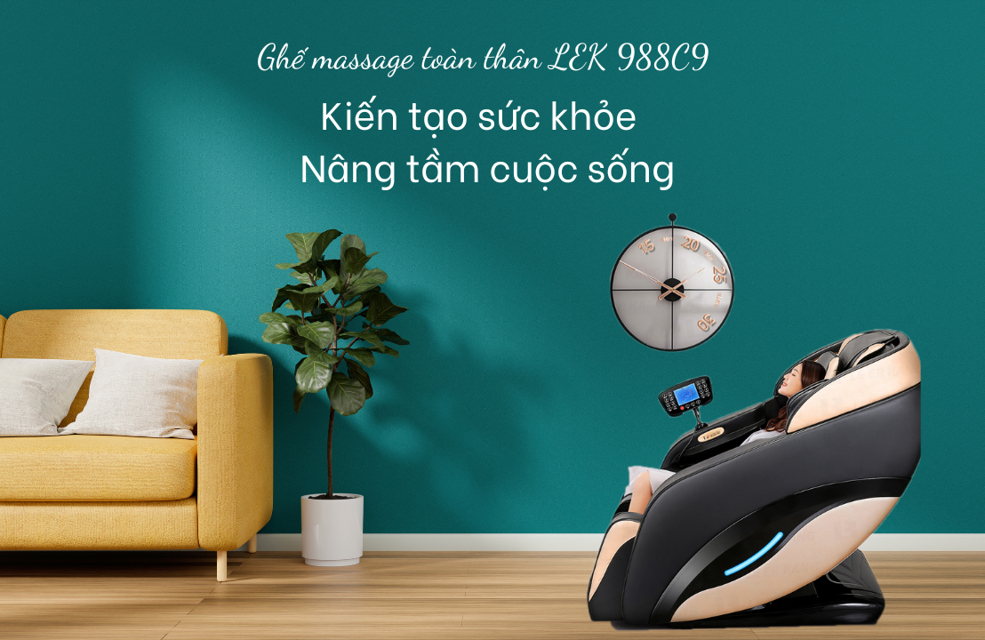 Ghế massage toàn thân Leercon LEK - 988C9 là món đồ gia dụng chăm sóc sức khỏe thông minh sở hữu thiết kế công thái học mới nhất hiện nay có thể tự căn chỉnh vừa vặn với cơ thể mỗi người khi hoạt động để đem lại quá trình massage toàn thân hiệu quả và thoải mái nhất. Sở hữu công nghệ con lăn 6D hiện đại nhất với đa dạng các chế độ và kỹ thuật massage chuyên sâu bằng các động tác ấn, bóp, nhào, nặn, day, xoay tròn... đặc biệt là phạm vi hoạt động xa hơn nhờ chiều dài đường bi chuyển động của con lăn lớn hơn sẽ giúp người sử dụng trải nghiệm được cảm giác massage tuyệt đỉnh có 1 không 2 chân thật như bàn tay người. Bên cạnh đó, sản phẩm còn sở hữu hệ thống sưởi nhiệt lưng chân có túi chườm ngải cứu để khai thông huyệt đạo, giảm đau nhanh chóng và cải thiện đường hô hấp.