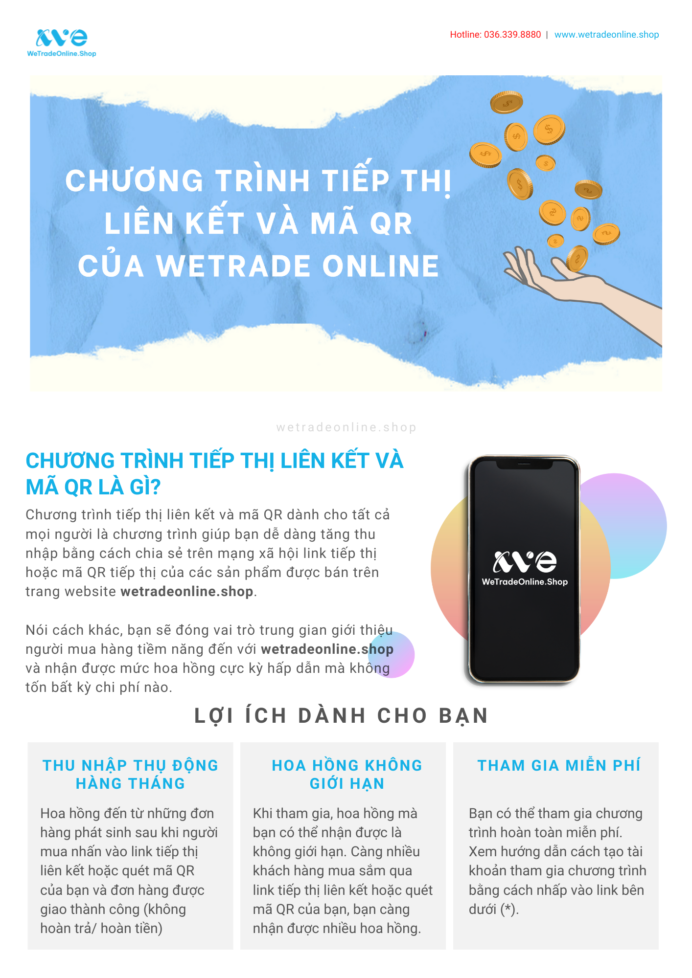 - Tất cả các sản phẩm của WeTrade Online đều là các sản phẩm đồ gia dụng thông minh chính hãng chất lượng với giá cả phải chăng được nhập khẩu và phân phối bởi Công ty cổ phần bán hàng trực tiếp trực tuyến WeTrade Online.