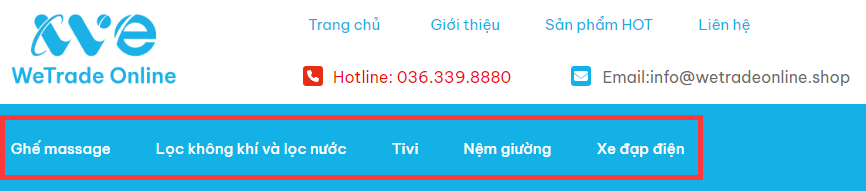 Sử dụng menu danh mục sản phẩm của website: chọn loại sản phẩm muốn mua là ghế massage, máy lọc không khí, Tivi, v.v..