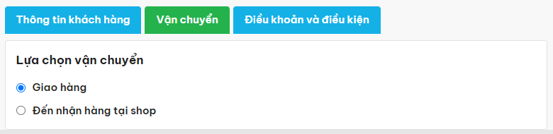 Bước 5: Lựa chọn hình thức vận chuyển là Giao hàng tận nơi hoặc Đến nhận hàng tại shop tùy theo nhu cầu của bạn