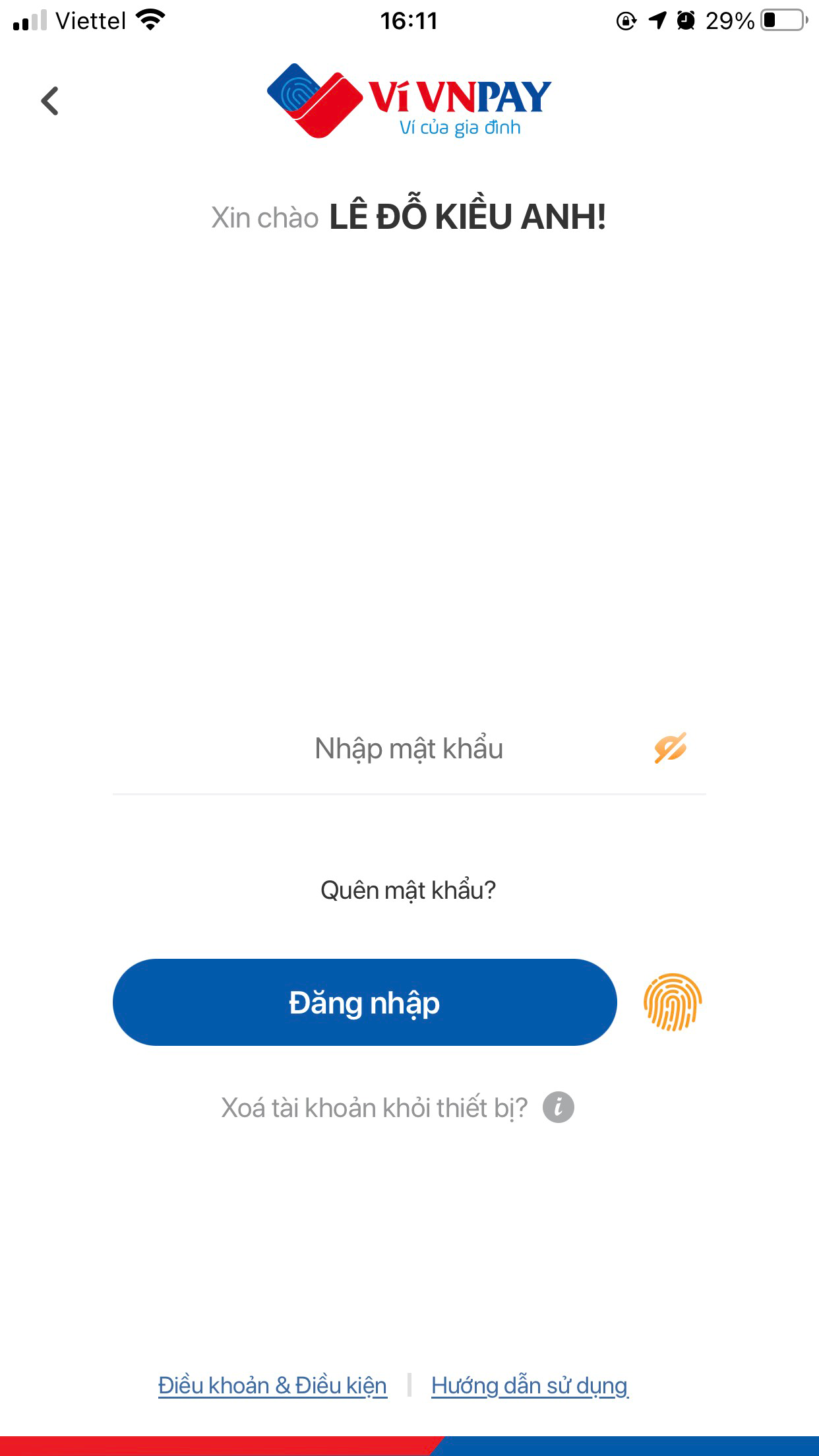 Tiếp theo quý khách thực hiện đăng nhập ứng dụng theo các bước
