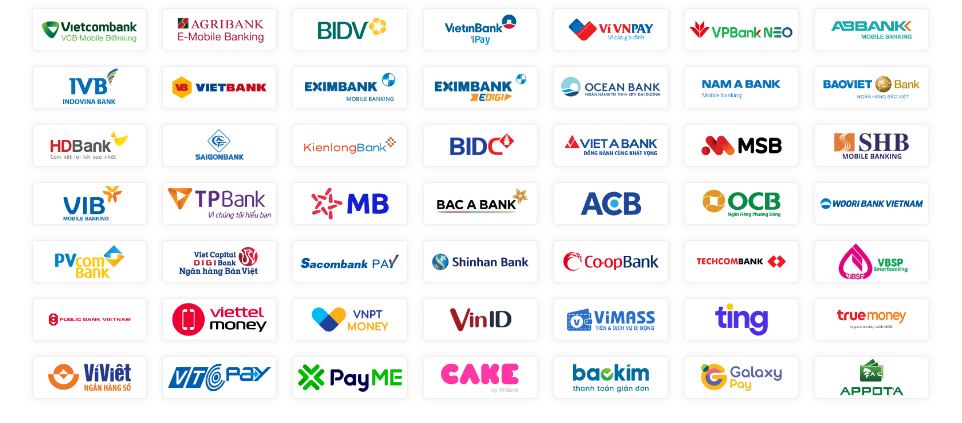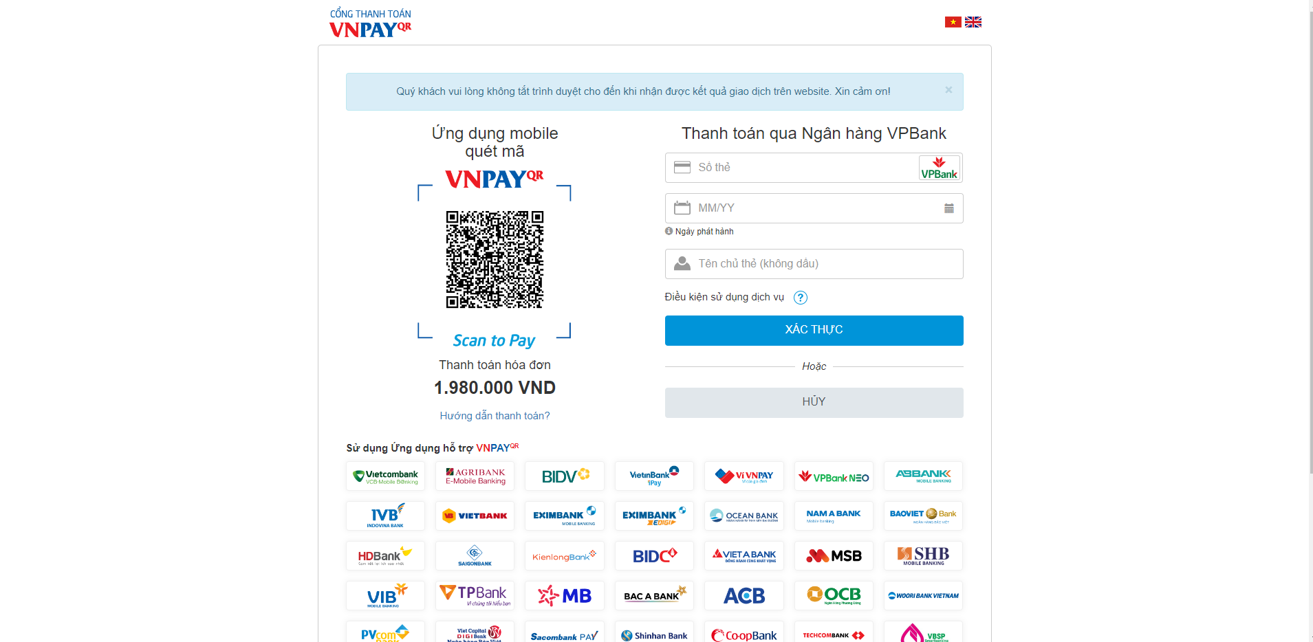 Ngân hàng hỗ trợ thanh toán bằng VNPAY-QR
