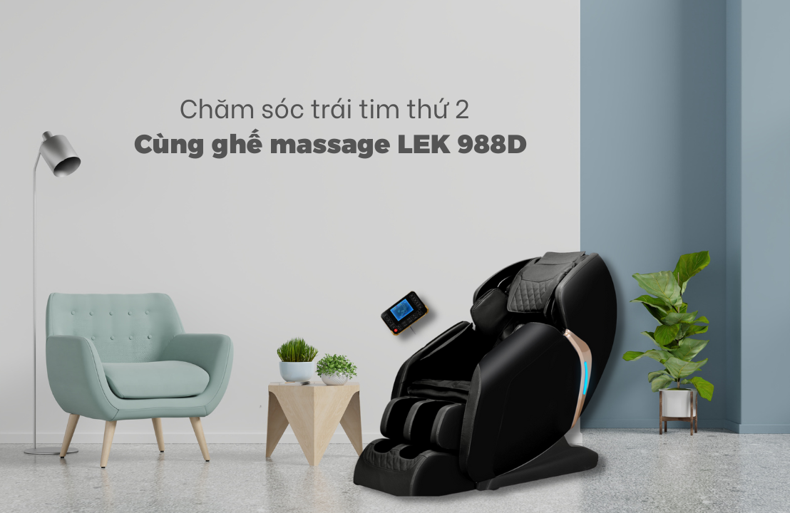 Ghế massage toàn thân LEK 988Y tính hợp đầy đủ các tính năng massage hiện đại nhất từ con lăn silicone mềm mại massage êm ái, tính năng bodyscan, massage không trọng lực cho tới massage chân chuyên sâu. Việc tăng cường tuần hoàn máu, thúc đẩy lưu thông khí huyết cho cơ thể phụ thuộc rất nhiều vào đôi bàn chân của chúng ta. Chân phải đứng, ngồi 16 tiếng không vận động vô tình đã tạo áp lực rất lớn cho cơ thể, khiến cơ thể rơi vào tình trạng mệt mỏi thường xuyên. Ghế massage LEK 988Y sở hữu đa dạng các phương pháp massage sẽ tác động sâu vào các huyệt đạo ở lòng bàn chân xua tan mệt mỏi tức thì cũng như giúp giải tỏa tình trạng căng thẳng để cơ thể thư thái ngủ ngon hơn.